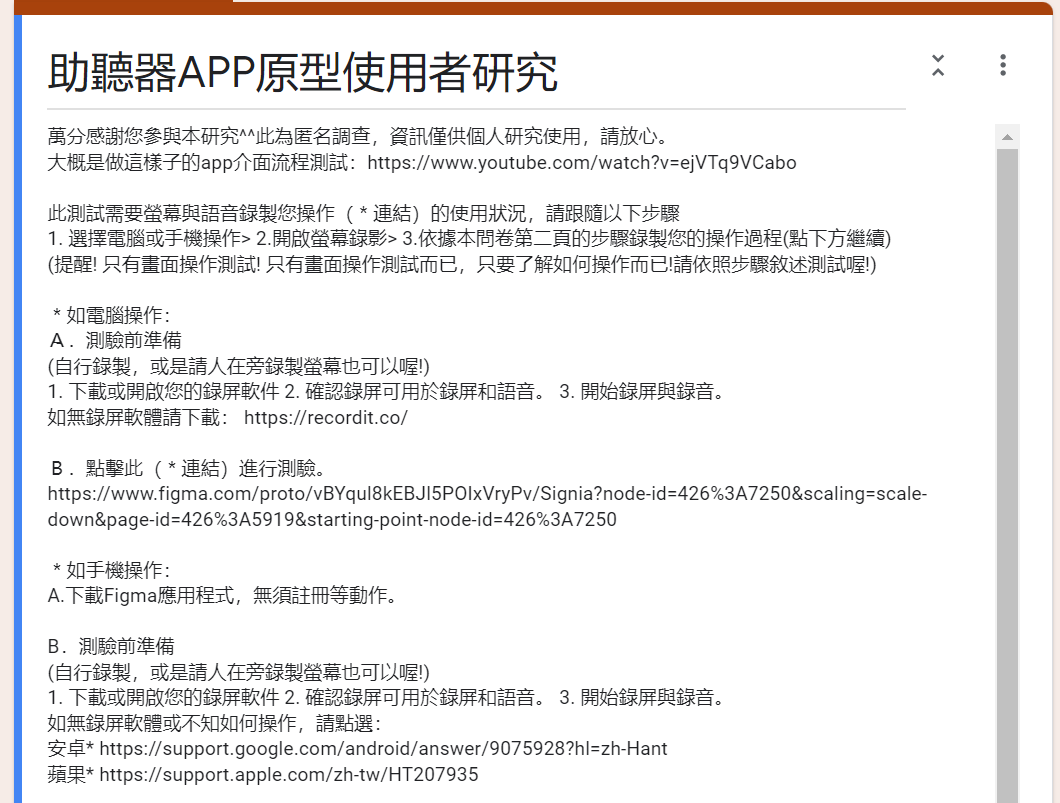 Explain the operation steps and screen recording method, and conduct a questionnaire survey after completion.Design user research through online ethnography and questionnaires.